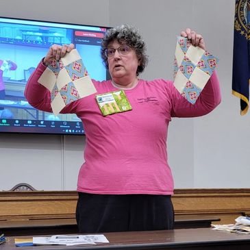 Bonny demonstrated on how to make a "Making a Nine Patch Block without cutting individual squares" See the PDF directions below